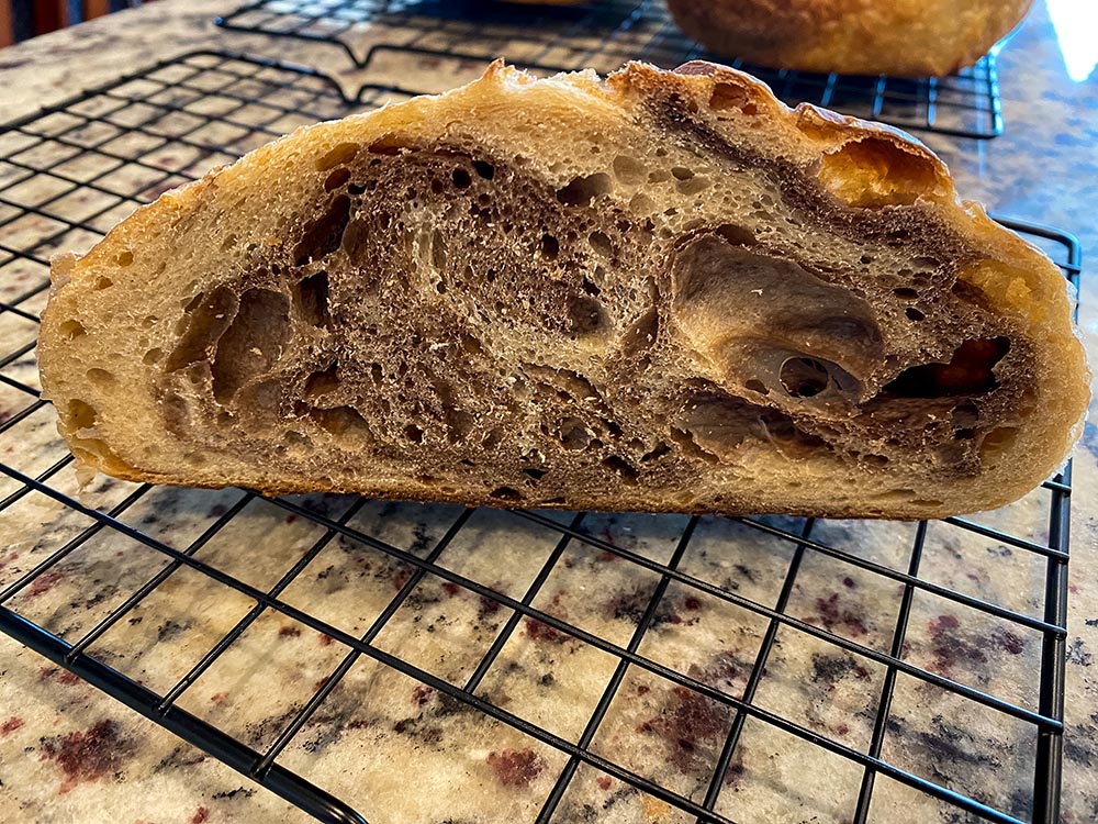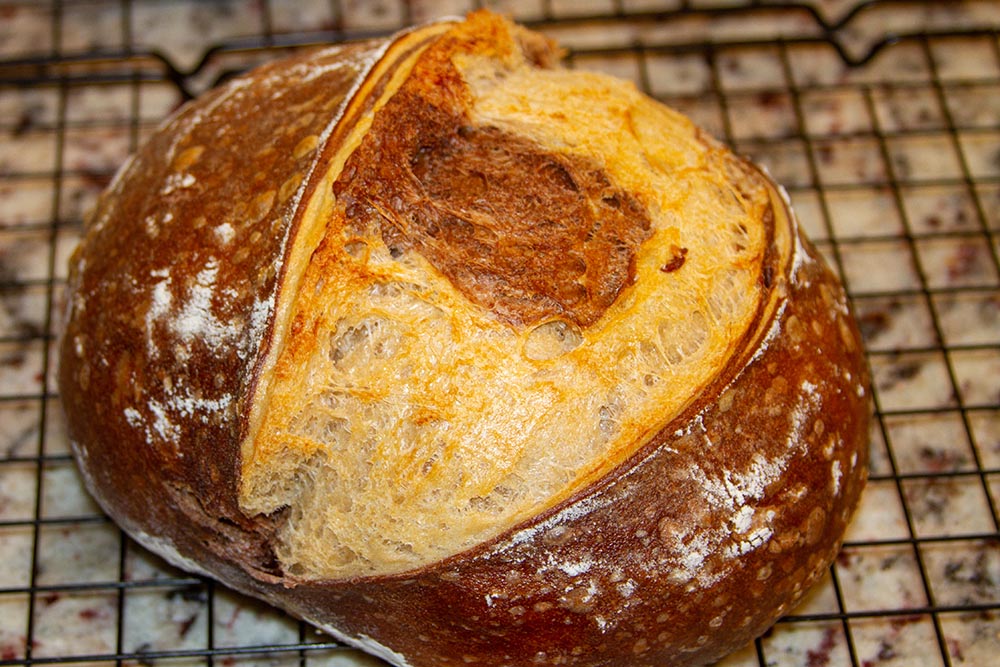 Sourdough bread is a type of bread that is made with a sourdough starter. This starter is made with flour, water, and yeast, and it is used to leaven the bread. The dough for sourdough bread is usually made with a combination of bread flour and whole wheat flour. At times other ingredients are added to the bread. Sourdough bread has a slightly sour taste and a chewy texture. It is often used for making sandwiches, and it can also be eaten on its own.