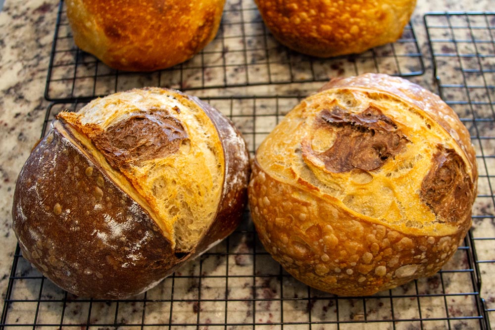 Sourdough is a bread made by the fermentation of dough using wild lactobacillaceae and yeast. Lactic acid from fermentation imparts a sour taste and improves keeping qualities.